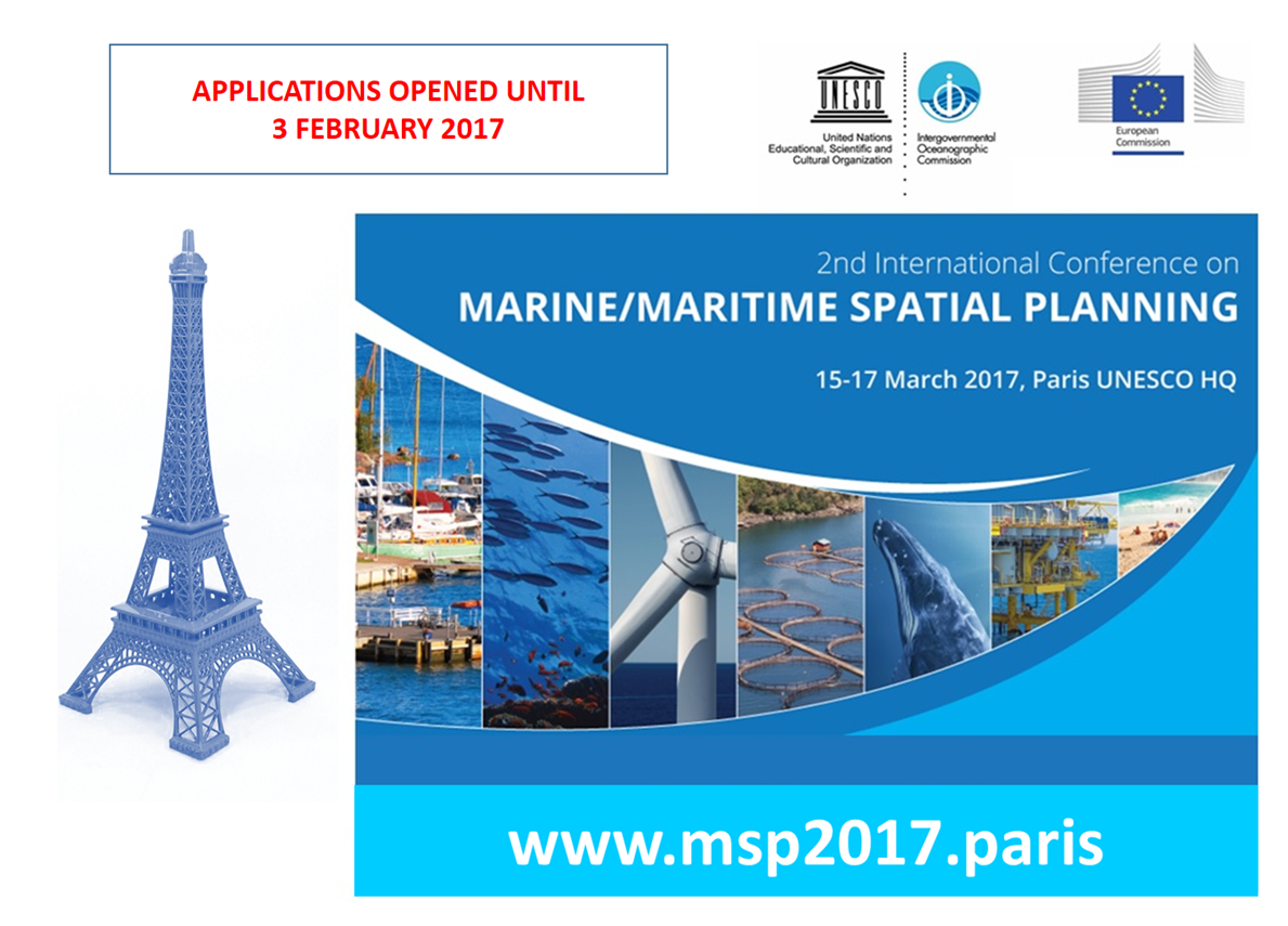 The applications to participate at the 2nd International Conference on Marine/Maritime Spatial Planning jointly organized by IOC-UNESCO (MPR) and the European Commission – Directorate General for Maritime Affaires and Fisheries will remain opened until 3 February 2017.